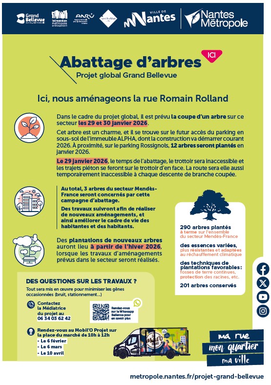 Situé sur les villes de Nantes et Saint-Herblain  le Projet Grand Bellevue, vise à transformer le quartier en profondeur. Les trois orientations majeures sont :